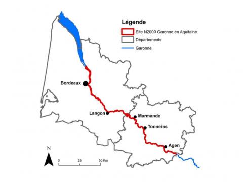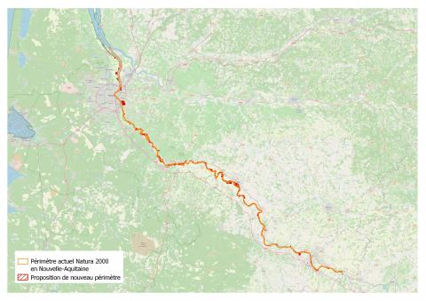 Périmètre du site Natura 2000 "Garonne en Nouvelle-Aquitaine"