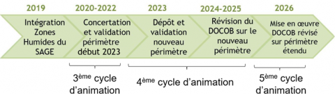 Calendrier prévisionnel du projet d'extension du site Natura 2000 et d'évaluation du DOCOB