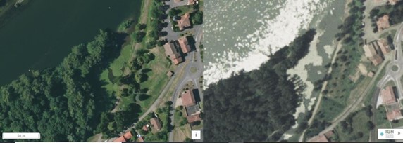 L'entrée du bras-mort actuelle (gauche) et en 2000-2005 (droite)