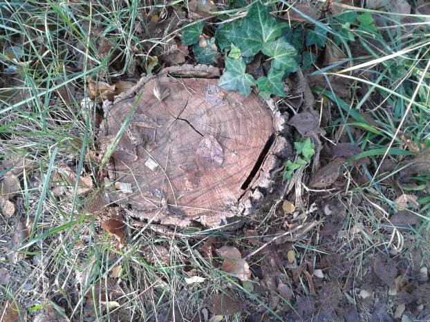 Souche d’acacia morte après traitement à l’ail (saignées dans le liber à gauche) (MIGADO ©)