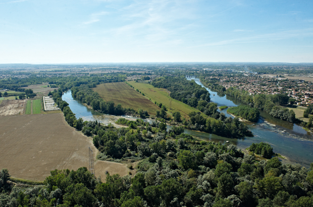 La confluence de la rivière Ariège (à gauche) et du fleuve Garonne (à droite) - Photo archives Didier Taillefer/Syndicat mixte d'études et d'aménagement de la Garonne