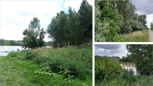 À gauche : la roselière qui jouxte la Garonne ; en haut à droite : la saulaie à saule blanc et en bas à droite : la ripisylve en bord de Garonne - photos Claire Boscus et Mathieu Beaujard/SMEAG