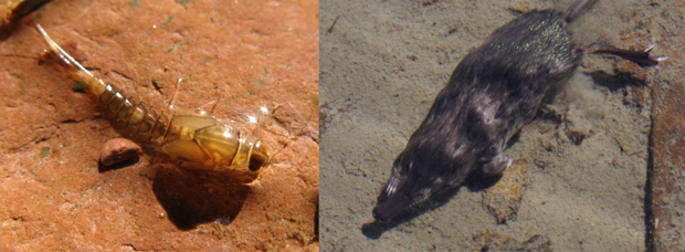 La larve éphémère (à gauche) est l'une des proies préférées du desman des Pyrénées - Photos conservatoire d'espaces naturels (CEN) d'Occitanie