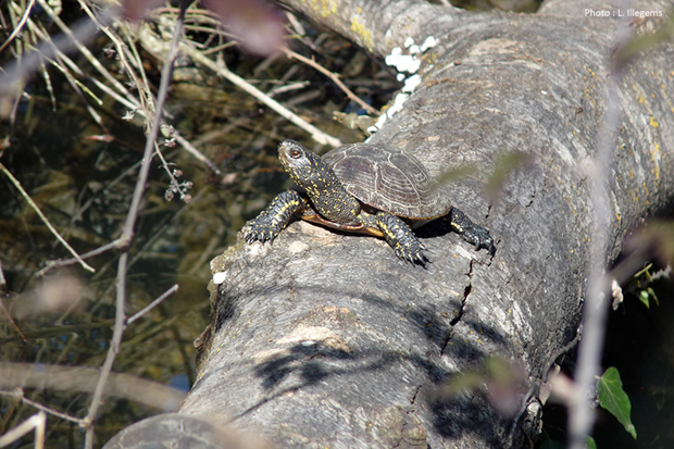 Comme tous les animaux à sang froid, la cistude a besoin de plusieurs heures ensoleillement pour réguler sa température corporelle - Photo Laurent Barthe/Nature en Occitanie
